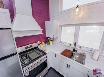 👉Deluxe Loft with 6'4" head clearance 👉Larger kitchen & cabinetry package 👉Full-size propane range with built-in Griddle 👉Custom vent hood 👉Quartz Countertops 👉Dining Bar for 3 👉Built-in Bluetooth speaker system in the bedroom & main living area 👉Painted Shiplap Interior Wallboards 👉Larger mini-split system with 2 interior heads 👉Glass Shower Door + Faux Tile Shower Liner 👉Vessel Sink 👉Tankless hotwater heater 👉Connections for separate Washer & Dryer 👉Full-Light Outswing Door with Blinds in the Glass 👉Extra Built-In Storage in Bath & Bedroom 👉Upgraded Vinyl Floor Tiles 👉Structural Insulated Panels (SIPs) for extra structural strength, better insulation and 10% overall weight reduction